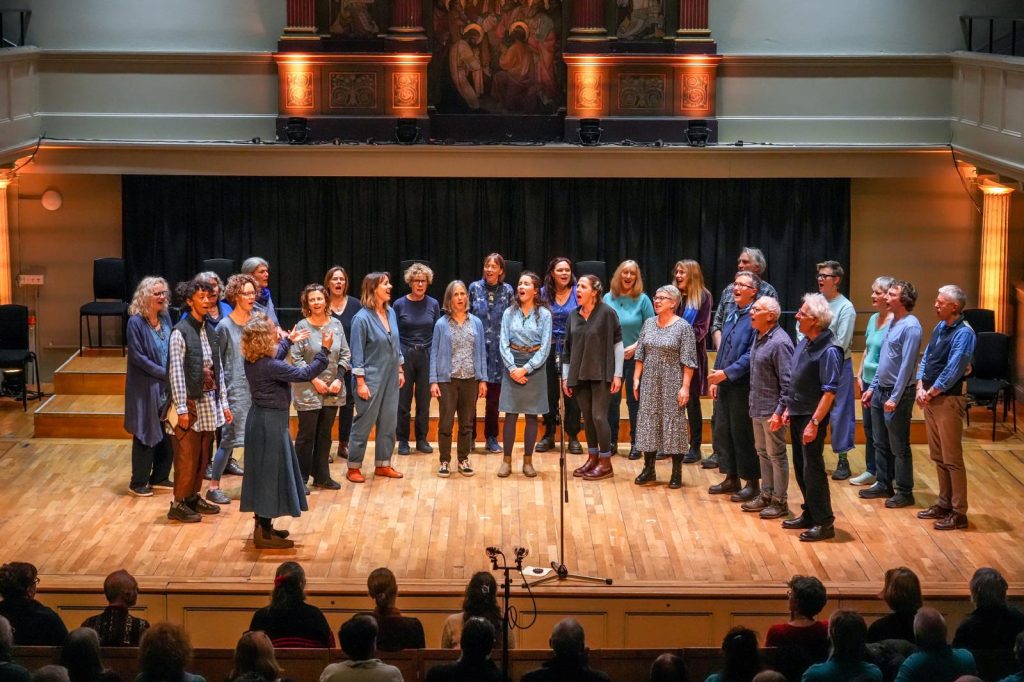 Acapellies Community Choir began to evolve in 2015. I wanted to grow a local, un-auditioned choir that would perform publicly and creatively. We first gathered together in the Star Anise Cafe in Stroud. From there the choir blossomed but then the lockdowns came into force and in 2020 we were no longer allowed to sing any more. We met online for a while, to keep group morale up and then sang outside in the cafe courtyard. Since this time we have moved to a larger premises and performed many concert-series in the round. The Gratitude Project, Songs of Fortitude, Sanctuary, Archaea, InConsolable, Resonance and WildSong.