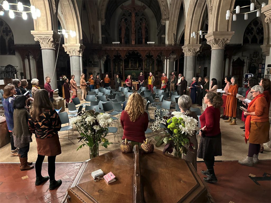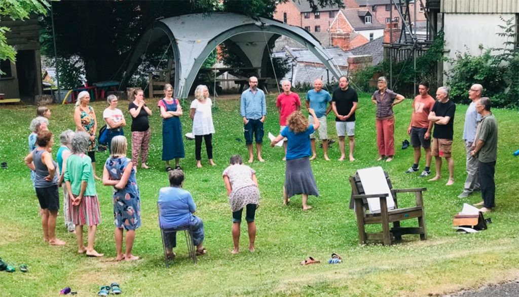 Acapellies Community Choir began to evolve in 2015. I wanted to grow a local, un-auditioned choir that would perform publicly and creatively. We first gathered together in the Star Anise Cafe in Stroud. From there the choir blossomed but then the lockdowns came into force and in 2020 we were no longer allowed to sing any more. We met online for a while, to keep group morale up and then sang outside in the cafe courtyard. Since this time we have moved to a larger premises and performed many concert-series in the round. The Gratitude Project, Songs of Fortitude, Sanctuary, Archaea, InConsolable, Resonance and WildSong.